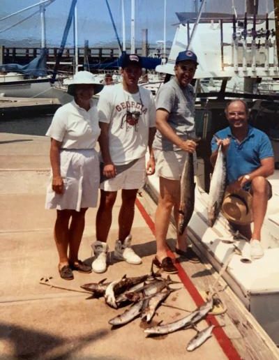 Brent Woody Musburger (former ABC Announcer with Howard Cosell) and family experience a good day fishing in the 1990’s with Captain Bob Morrissey.