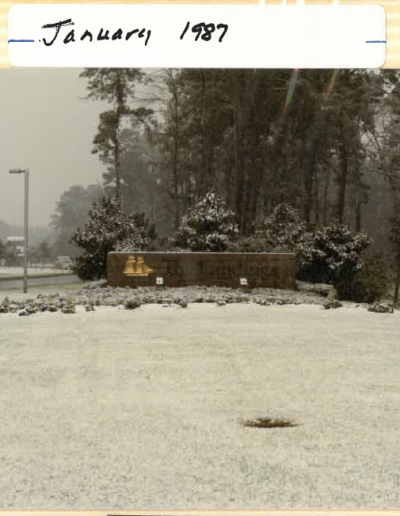 At that time, Landings Way South was a dirt road. Midpoint had been started, as well as the golf course. There was a huge sawdust pile in Oakridge, where the Union Camp logging camp was located. This area was where Log Landing Road is now. Although kids were told not to ride their bikes on this road because it could get internally hot and have a spot where it might cave in, they still did, riding around the loggers’ cabins in the area. Karen remembers an abandoned 1940’s Army surplus jeep (jeeps were useful for driving around on the rough roads), which had a tree growing up through it.