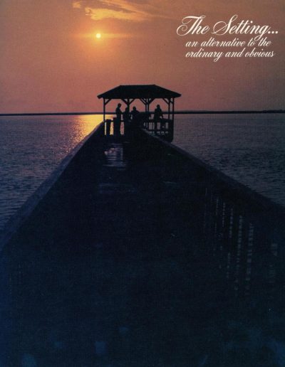 From the mid 1970s to 1980, there was a Cracker Barrel Store with gas pumps just outside The Landings’ North gate, which was the only gate at the time. The fire station just inside the gate doubled as a church on Sunday mornings. Fire trucks were backed out, folding chairs placed, and about 30 residents convened in golf carts and golf clothes for the church service. Afterwards, they would have breakfast at Marshwood, the only restaurant on the island, play golf on the only golf course, then sit at the bar, eat peanuts, and watch golf. This group formed the Skidaway Community Presbyterian Church (now the Skidaway Community Church). The tennis courts at Marshwood were the only ones, and there was a playground. Ladies had their own key to the restroom on the Magnolia golf course.
